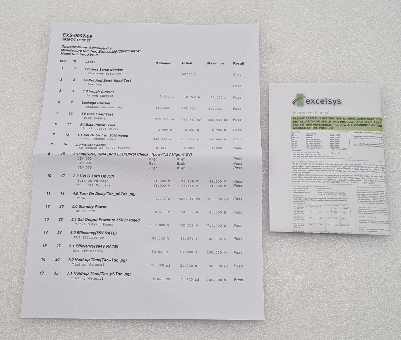 NEW - EXCELSYS XVB Power Supply XVB023444P01A