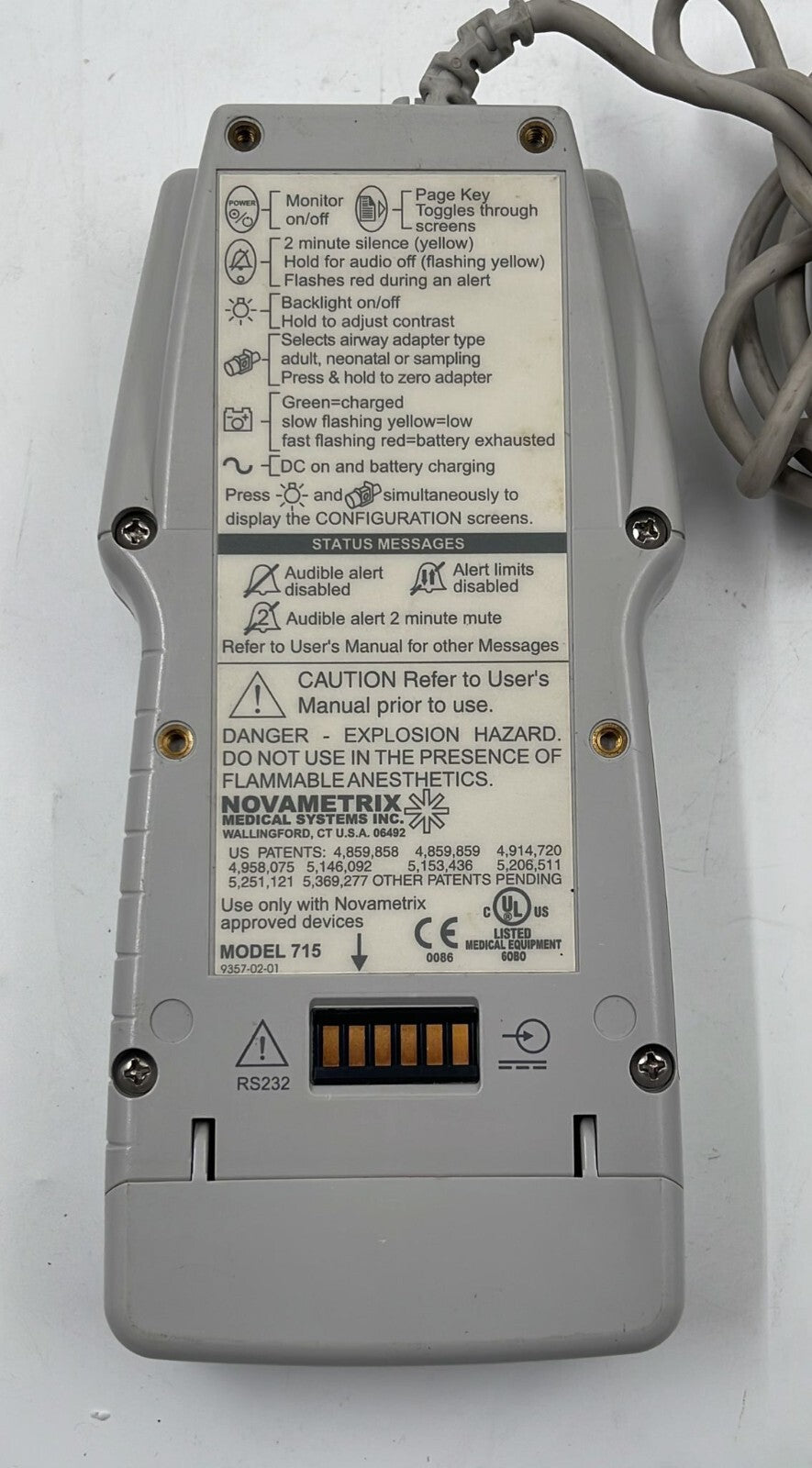 Novametrix Capnography/Oximetry Tidal Wave Sp 715 W/ Battery